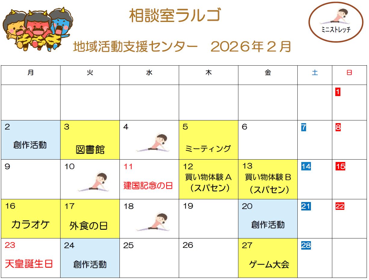 地活2月予定表 2026 1/30 今後の予定 2026年1月30日(Fri) 地域活動支援センター 相談室ラルゴ 2026年2月予定表 今後の予定 この記事が気に入ったら いいねしてね! よかったらシェアしてね! URLをコピーしました! URLをコピーしました! 地活9月予定表 関連記事 地活7月予定表 2022年7月1日(Fri) 地活8月予定表 2022年7月31日(Sun) 地活9月予定表 2022年9月3日(Sat) 地活10月予定表 2022年9月29日(Thu) 地活11月予定表 2022年12月3日(Sat) 地活12月予定表 2022年12月3日(Sat) 地活1月予定表 2023年1月4日(Wed) 地活2月予定表 2023年2月9日(Thu)