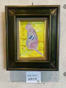 猫をモチーフとした作品が多く、その理由として「猫は私の命の恩人です」とエピソードを綴ったあと、「恩返しの一環」とコメントしておられます。